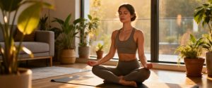 - Get into a comfortable position: Sit in sukhasana, padmasana, or any other meditative posture. Use a cushion if you need it for more comfort. If you have health issues that make it difficult to sit on the floor, practice this mudra lying down, sitting in a chair, or even standing.