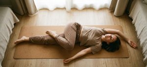 Here, the flyer rests on their back on the feet of the base, with arms extended to the sides. It is a therapeutic posture that opens the chest and improves back flexibility.