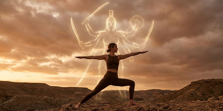 Durante la postura: Visualiza el simbolismo. Siente que no estás solo estirando músculos, sino canalizando una energía ancestral. Los brazos abiertos del Guerrero II son espadas. Tu equilibrio en Garudasana te eleva sobre las serpientes del ego.